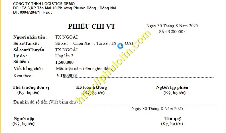- Tiền lương tài xế theo chuyến, tiền dầu, tiền thuê xe ngoài (nếu có), chi phí khác liên quan đến chuyến vận chuyển.